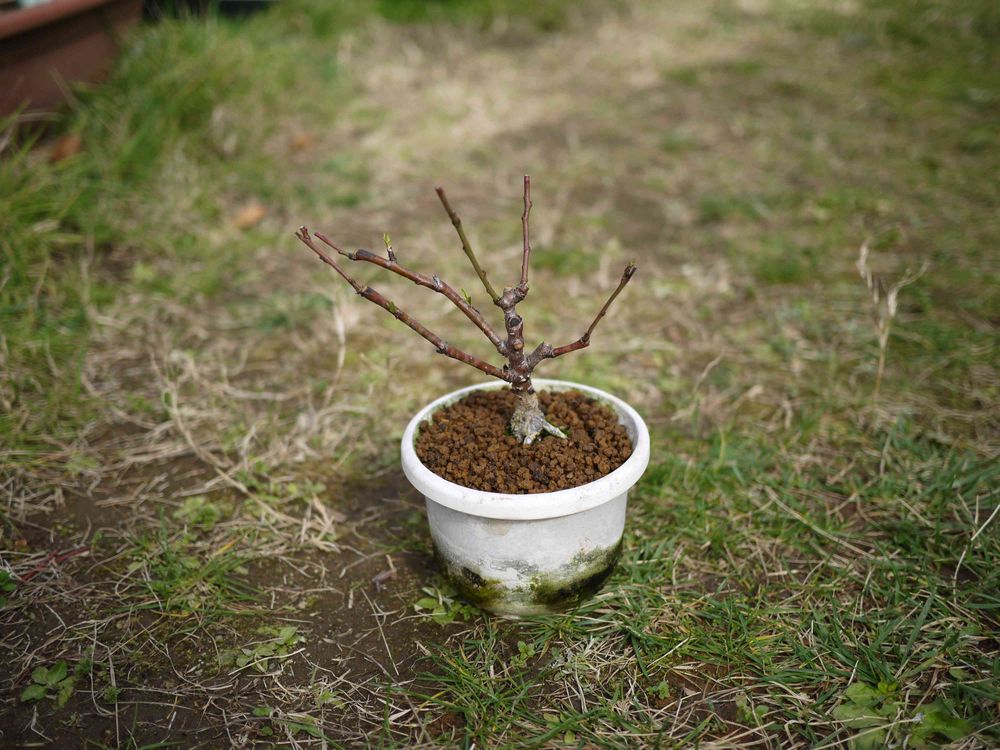 食べた桃の種を蒔いておいたらこんな感じになりました。小品盆栽っぽく仕立てられればいいのですが、とりあえず枯れないように、なったなりに育てています。
