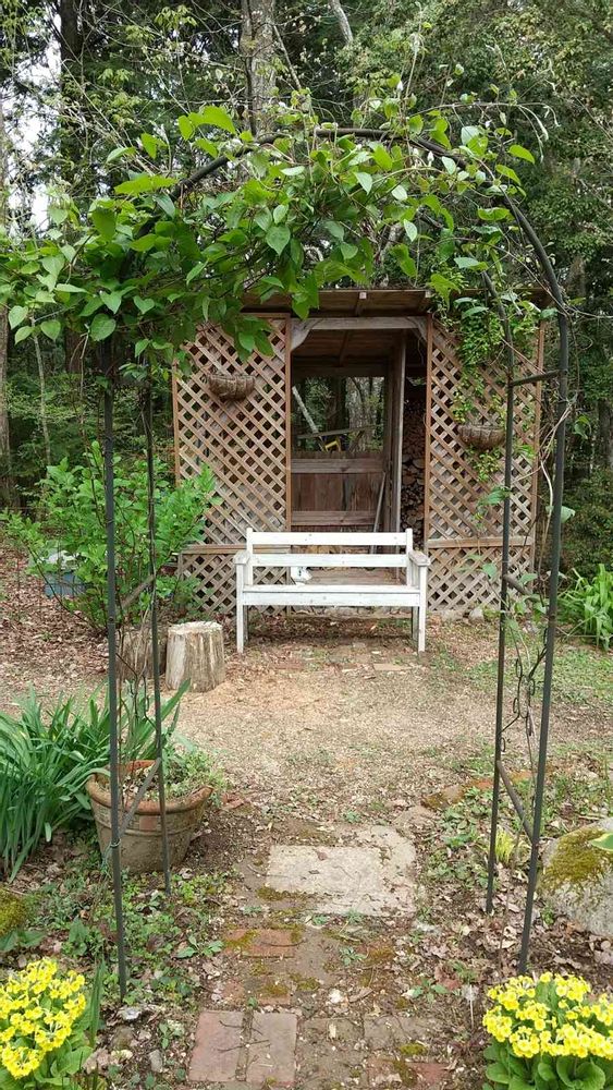 アーチの後ろの埋め込まれた鉢とか後ろの小屋の前に植えられた小木とか配置が考えられててすごく素敵です😍
