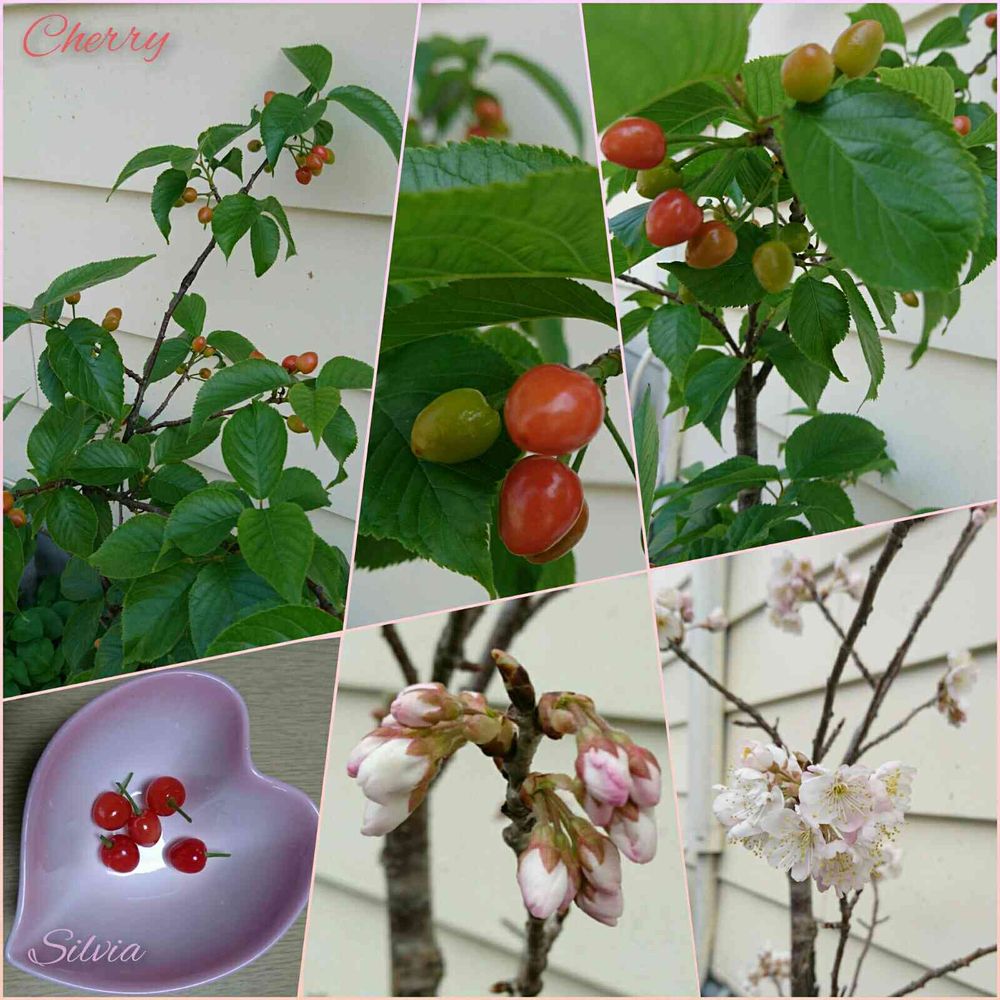 こちらは、お隣が昨年に苗木(若木)を植えられて、今年開花🌸、果実🍒を付けたものです〜😊ちょうどお隣の裏側で、うちの私道側からよく見えたので、3月初め開花した時は 、桜の品種が気になっていました👀最近、実を付け、今朝収穫されてたおじさんに出会い尋ねてみたところ、桜桃と教えて下さいました。3年目の若木で、可愛い実を掌に乗せて頂きました(๑°꒵°๑)・*♡💞
