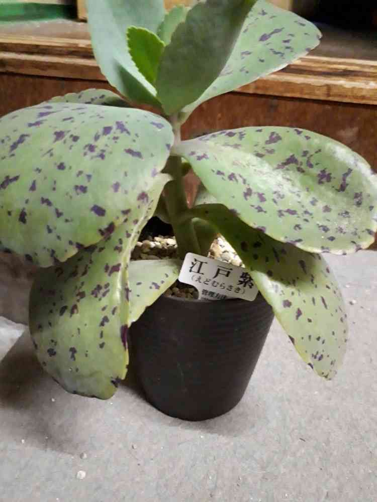 おはようございます☀昨夜撮影したカランコエ属江戸紫🍀名前が気に入って狩っちゃいましたし☺半年くらい前かな?徒長していたのを覚えています😢サイズは倍くらいになり、徒長も若干おさまっているかな😅
