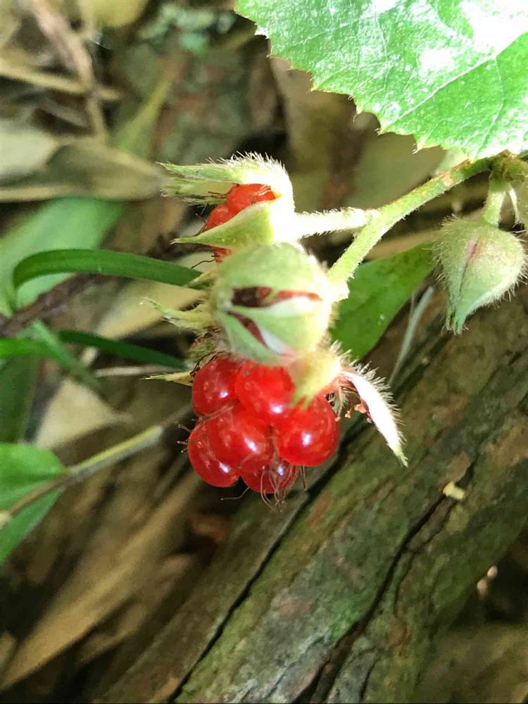 竹林の枯れた竹が倒れてないか気になり見に行けば野イチゴが赤い実を付けていました😊
