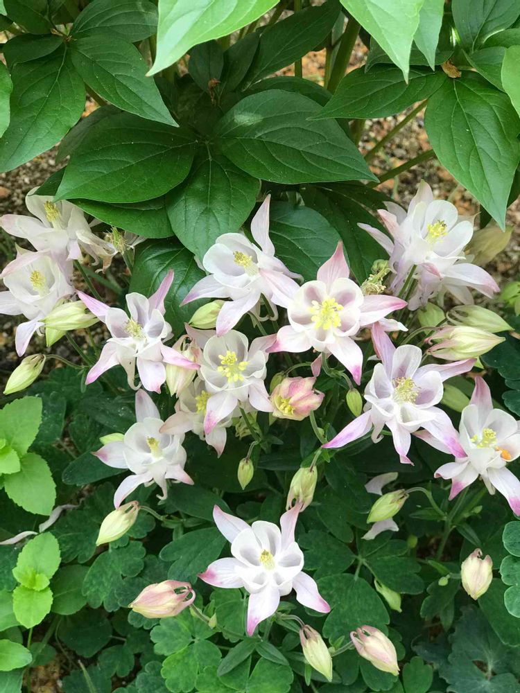 色んな花色のオダマキを育てています。