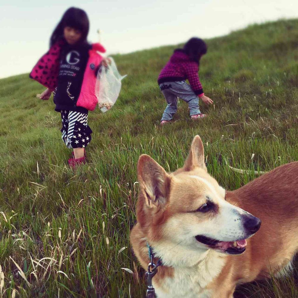 りんちゃんの散歩がてらに、つくし狩り(*≧艸≦)♡