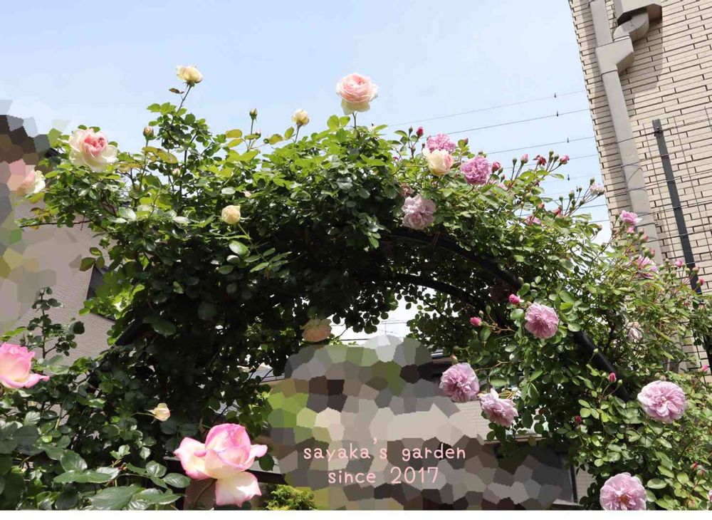 ブランピエール🌹とレイニーブルー🌹のアーチが咲いてきました💕