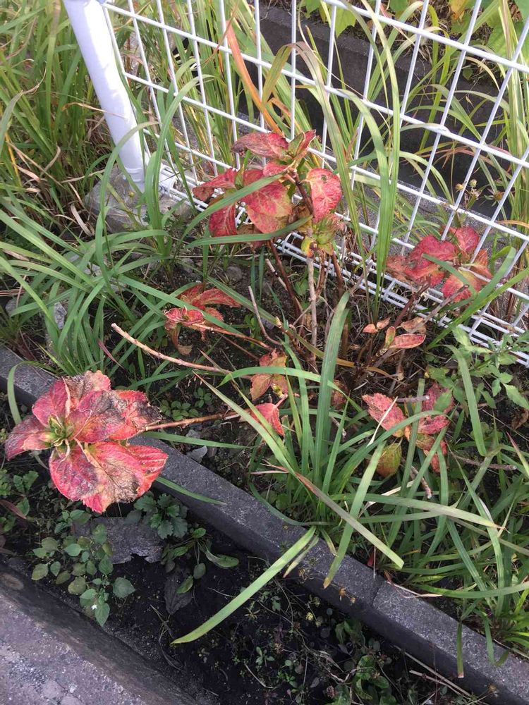 草むしりが追いつかずちょっと見苦しいですが、この一株だけ見事に紅葉(こうよう)しました。