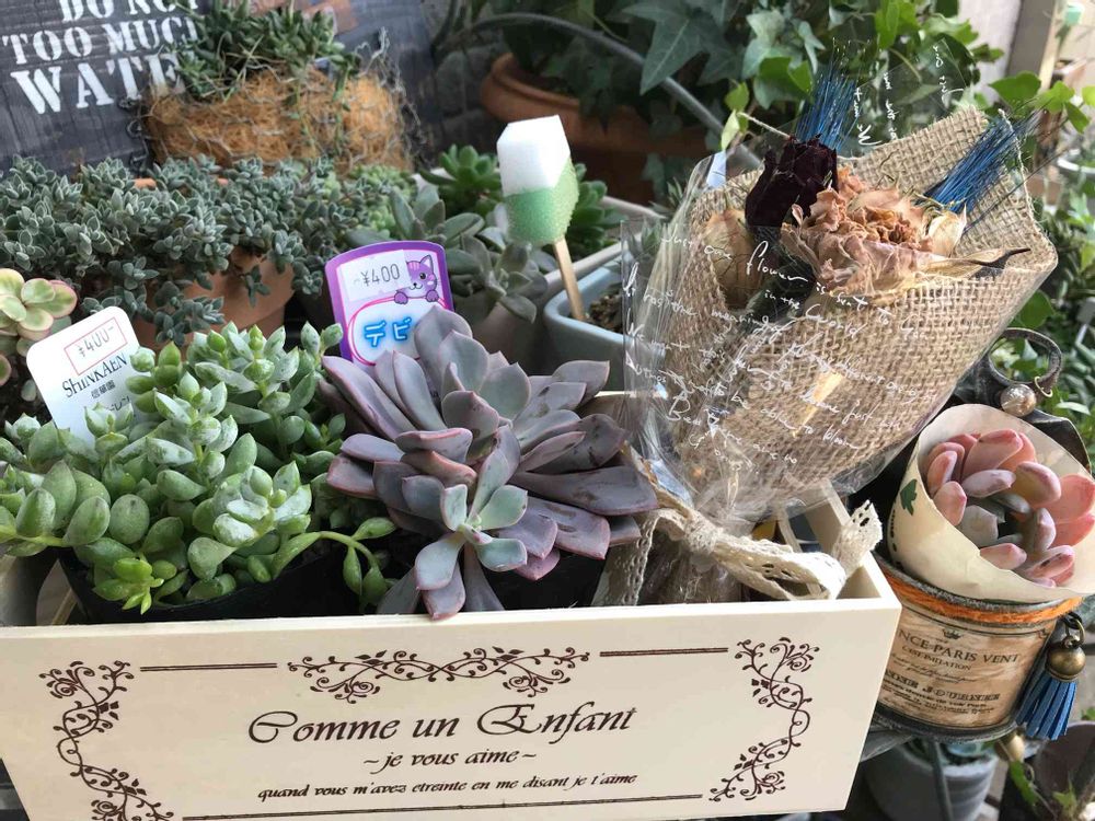 お子さま顔出しデビー¥400。なんだか分からないけどピンクの多肉¥300(笑)