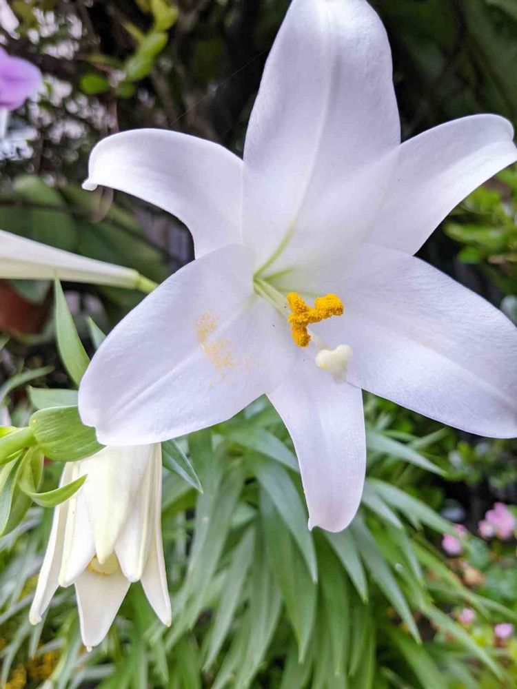 12月に顔🌱を出した『テッポウユリ』のお花が咲きました๓´˘`๓♡九州以南のお花と初めて知りました🎶