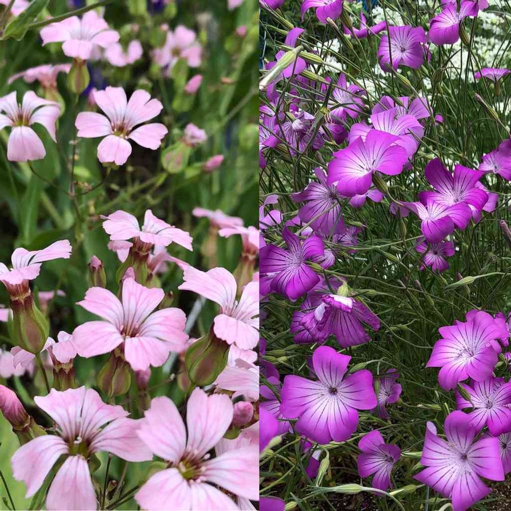 調べ直しましたが両方ともアグロステンマ、別名ムギナデシコ、ムギセンノウのようです✨