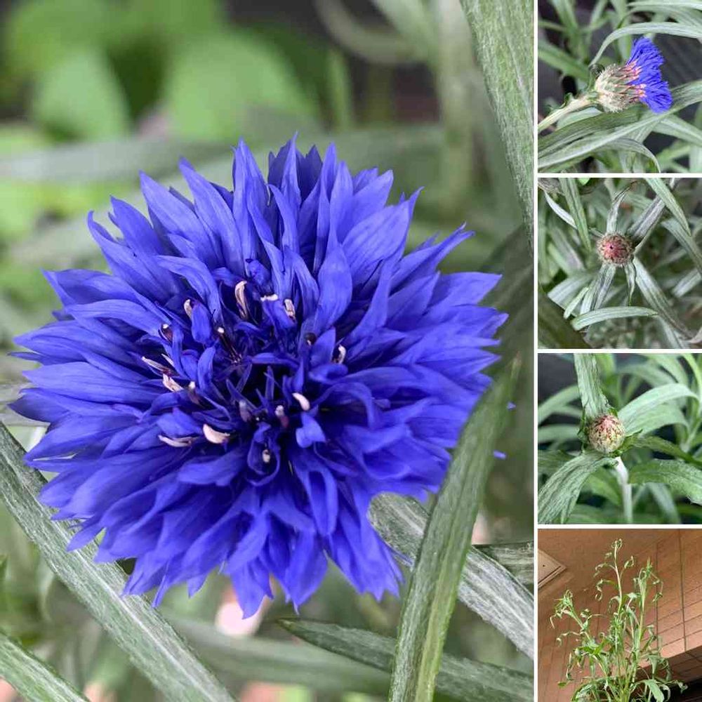 この矢車菊は、青い花限定の種を見つけて購入しました。