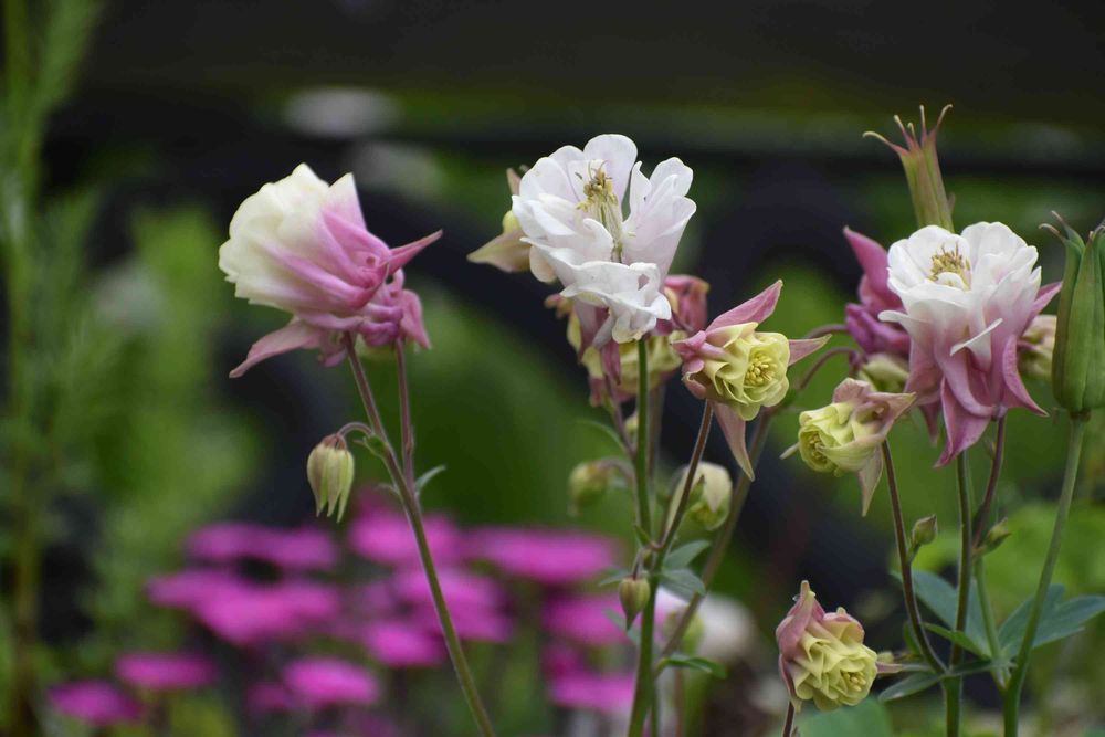 ピンクと白のダブル咲のオダマキ可愛いですねー、私もオダマキ大好きです😍