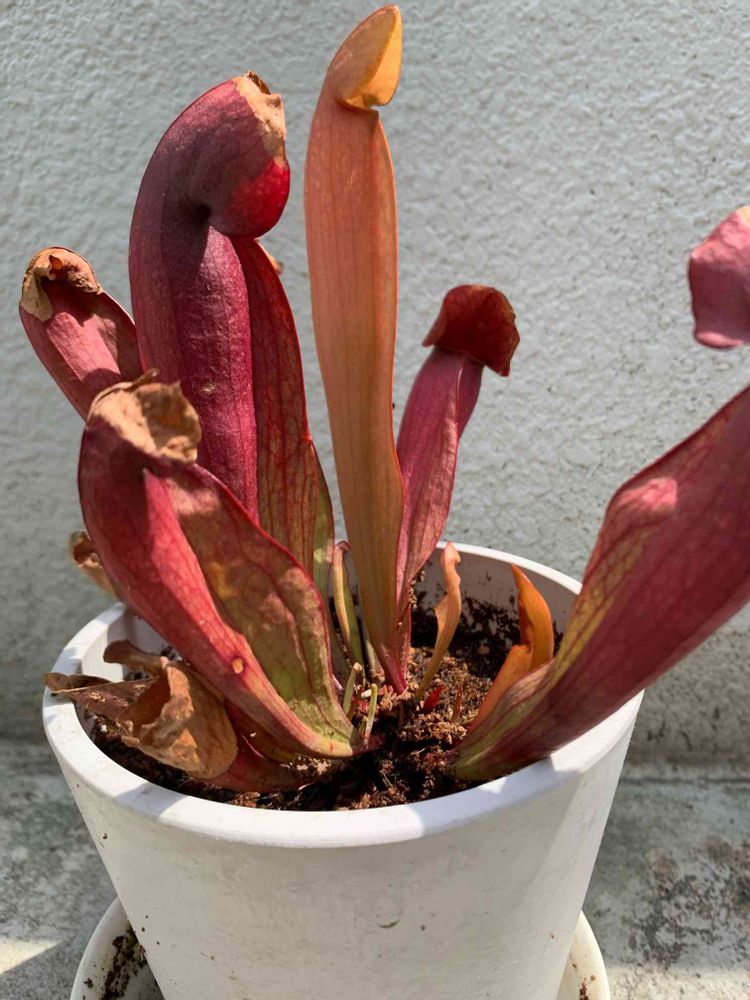 サラセニアも植え替え。水苔50%くらい入れて一回り大きい鉢に。(じつはこの前まで中身は買った時の黒いやつのままだった)