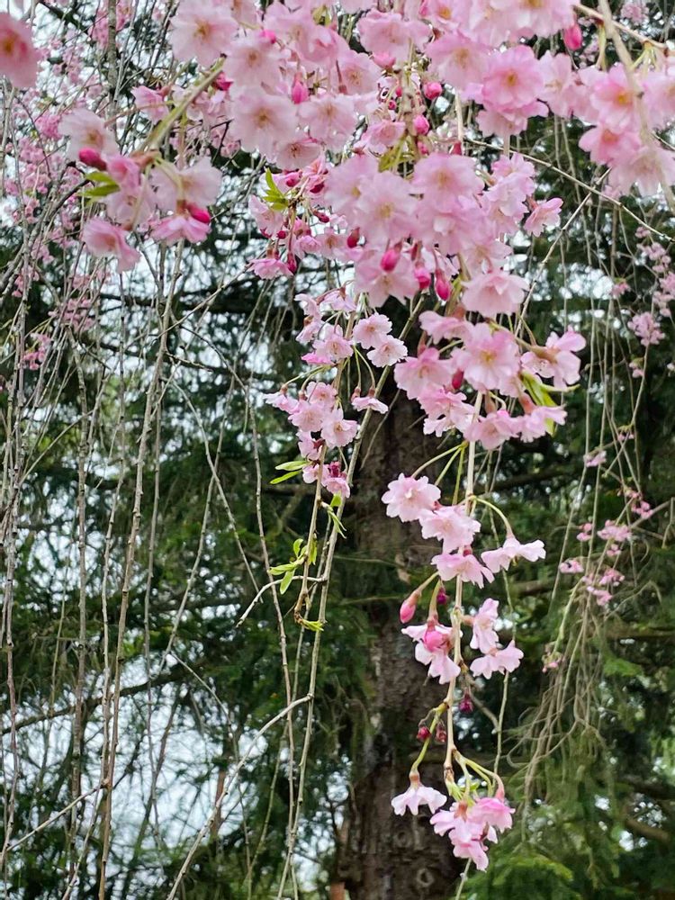 娘の作品の展示会に行った先で、思いがけず見頃の枝垂れ桜に会えました。🤗