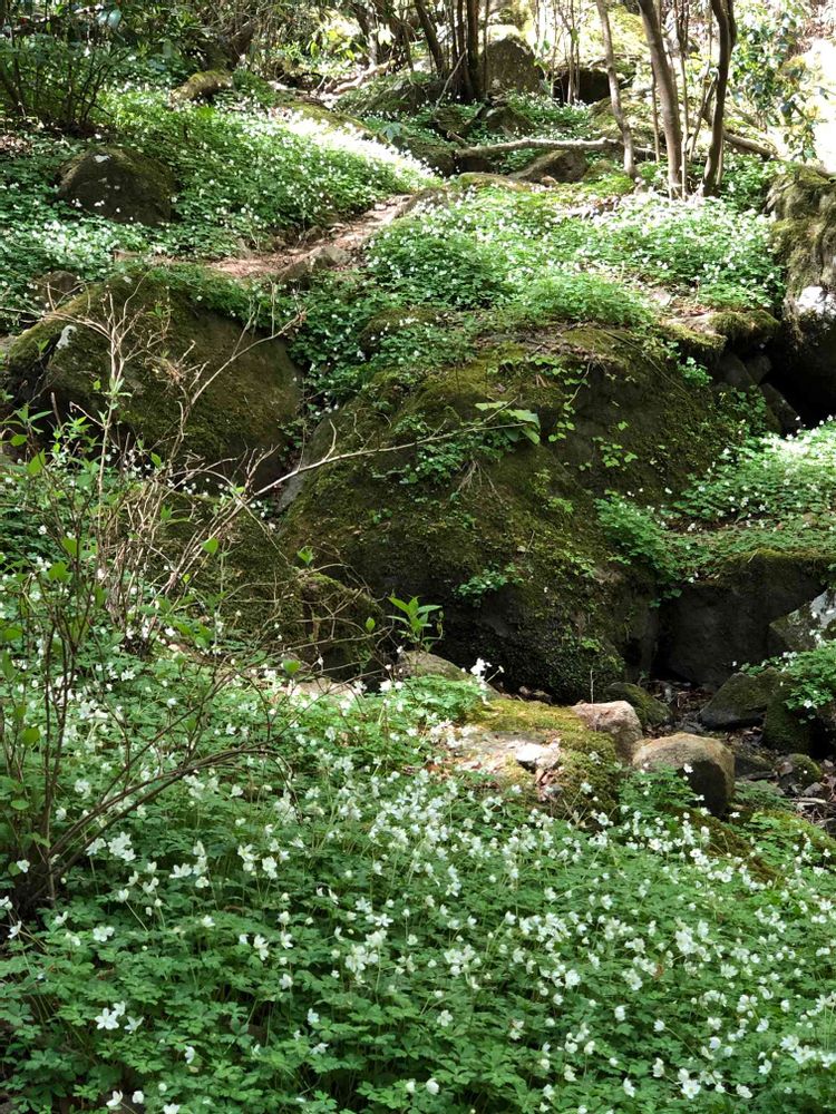 斜面に沿った山道の周り一面ニリンソウの群生ですから、もう最高😆