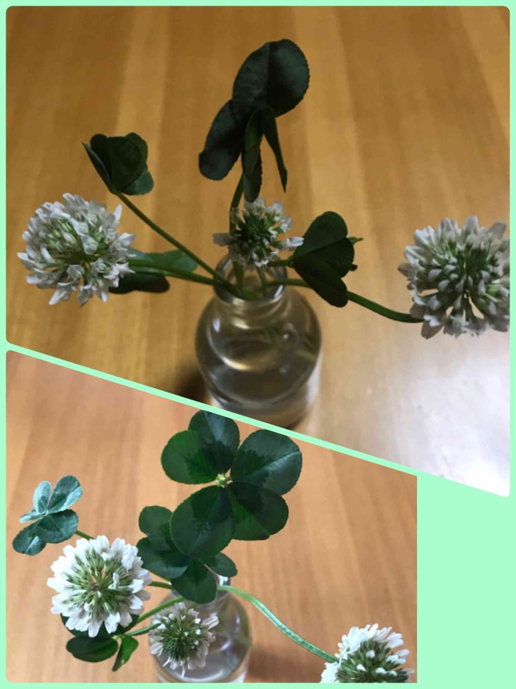 去年、クローバ🍀を、根っこが出るまで生けて、土に植えました。四葉の🍀が芽吹きましたよ❣