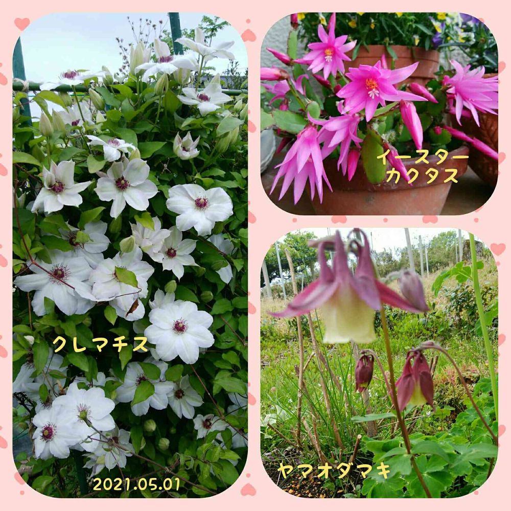クレマチス(名前不明)は、南側が沢山の咲いて北側はまだ蕾のまま。😆💦