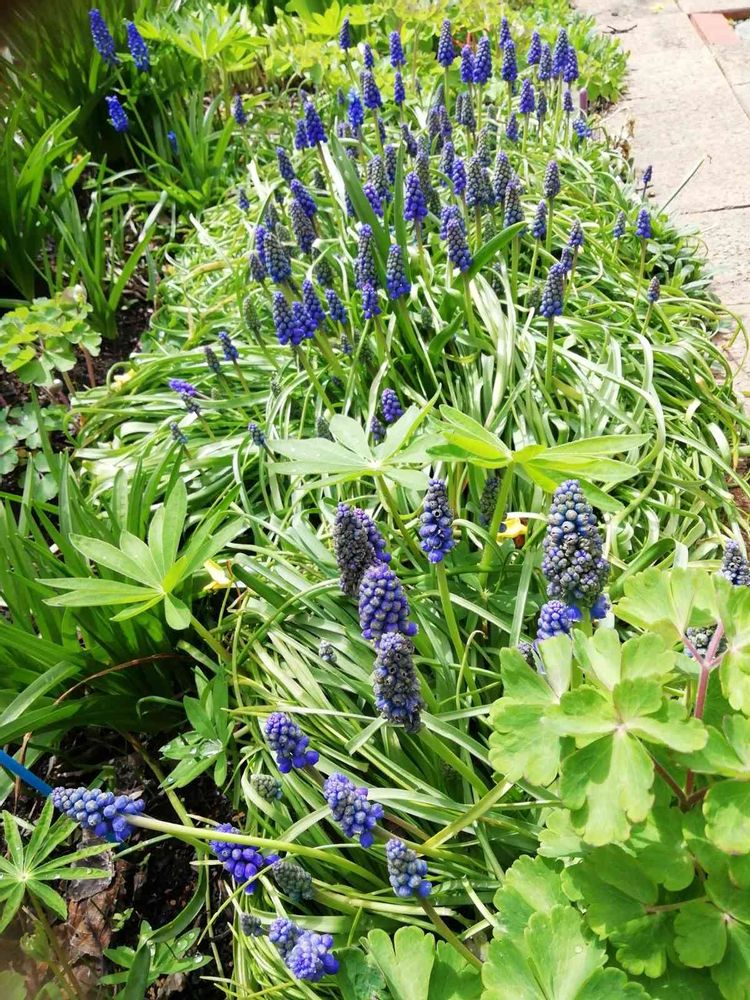 ムスカリの大群が目を覚ましました。すごい数のムスカリさん。スタートは5株でした。今は数えられません。(笑)あちこちに飛ぶんです。ベランダのした、おんこの木の下、砂利のところ。いろいろ元気に咲いています。まだ1分咲きくらい?かな?🐼🐼🐼