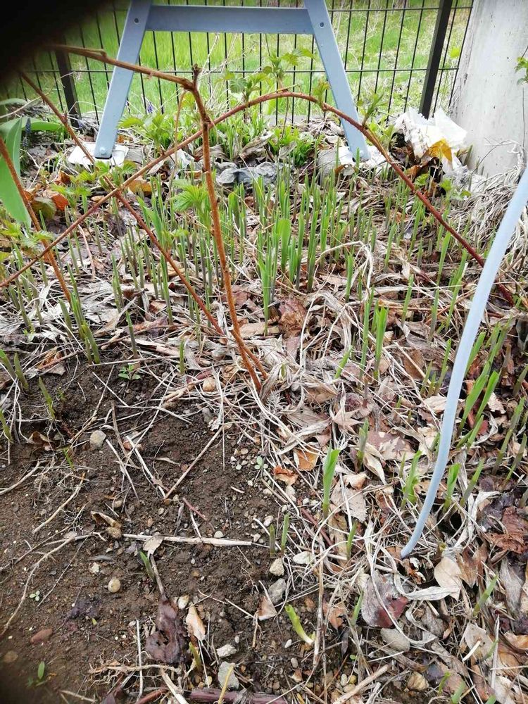 すずらんがところ狭しと芽をだしてきました。灯油タンクの下を占拠されました。