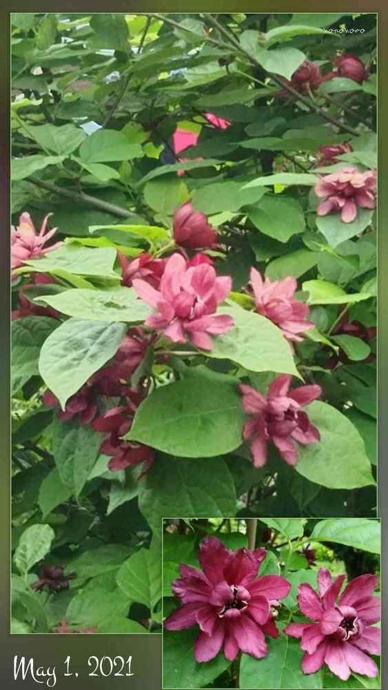 ナツロウバイとクロバナロウバイの一種カリカンサス フロリドウスを交配して作出した物だそうです。