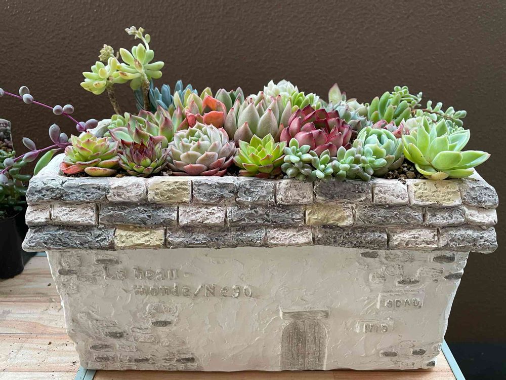 「つながる輪」のイベントの帰り、大正堂さんの前を通ったので、ガーデンメッセに寄って来ました。そしたら、こんなモルタル家鉢欲しいな!とイメージしていたものが売っていたので即買いです♡
