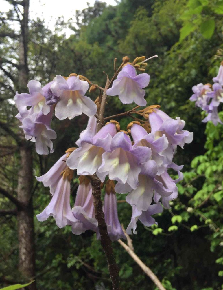 今の時期、山の一角が薄紫色に染められる所が、よく見かけられます。それが藤の花とこの桐の花です。