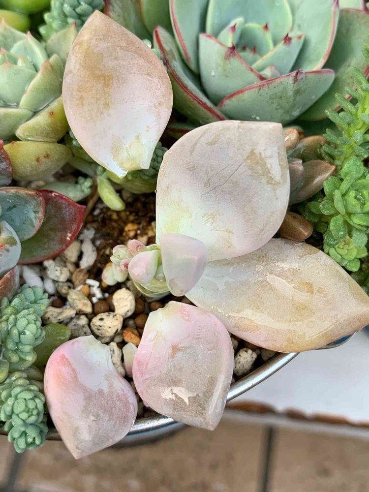 ❶バラバラ事件発生‼️寄せ植えに入ってる粉雪さんが‼️ピンクでムチムチで可愛くなってきたのに‼️外れた葉っぱが落ちていて〜😱😱😱 これはアイツの仕業か🐦