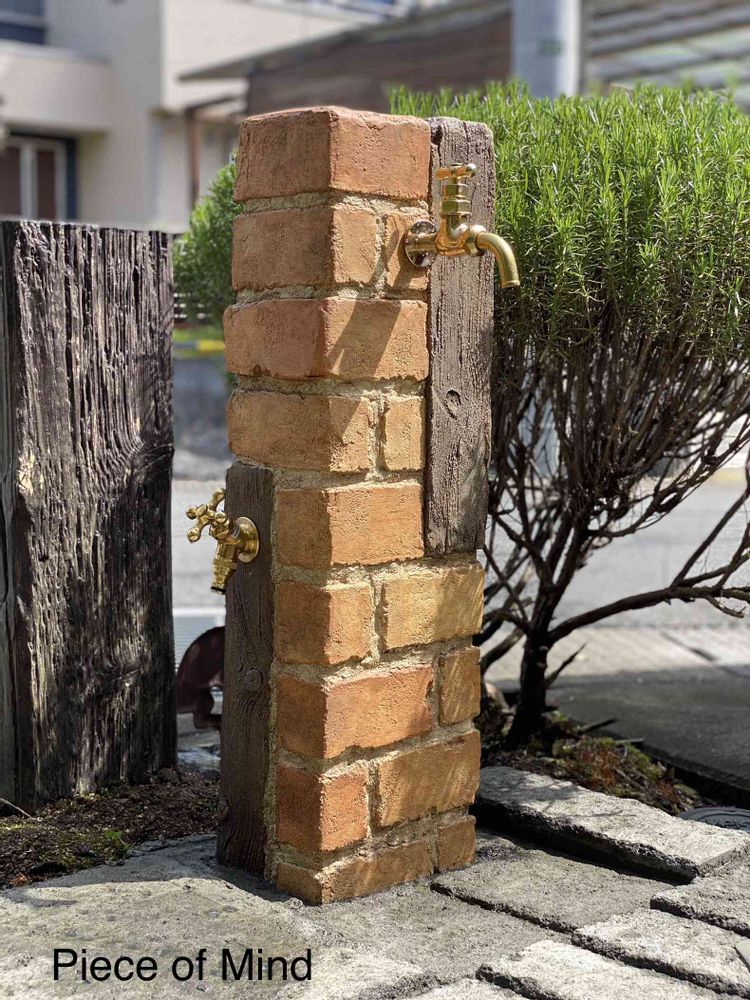 さん、せっかく自分で作る自由があるので、レンガに木材風に。20年近くなって枕木水道が壊れて来る方が増えて来ました。