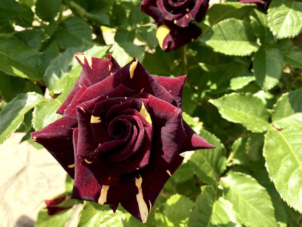 ダークレッドの花びらに不規則に黄色や白い斑が入り不思議な感じでした☺️
