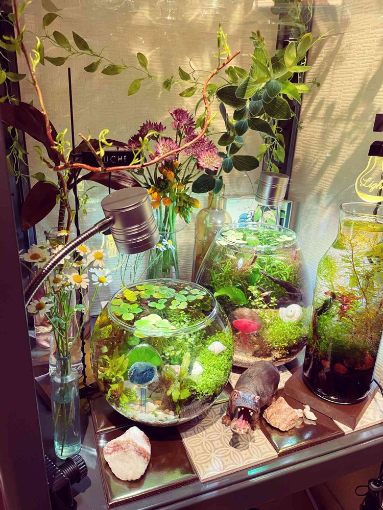 さんおはようございます(^○^)1つだけ水草のみで、あと2つはメダカちゃんが入ってます。水草のみ、は1週間に一回くらいボトルの掃除と水を半分くらい入れ換えてます。が、そんなに頻繁にはしなくてよいかと。私が掃除魔でして、、、笑 メダカちゃんのは、毎日ごはんの食べ残しを吸いとって、その分水を足して、、、3日に一回くらいは掃除しちゃってるかも、ですが、こちらもそんなにしなくて良いはず(^_^;) 掃除がシュミみたいなもんでして笑笑