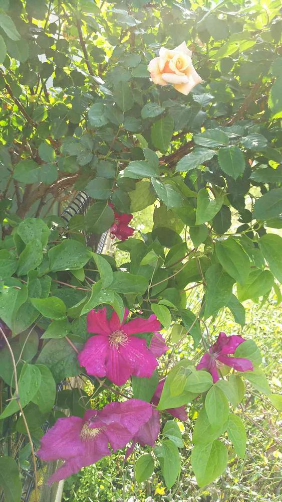 わが家のバラ🌹さんとクレマチスのコラボです🤗