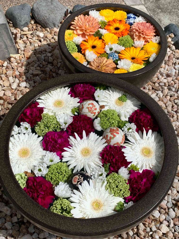 色鮮やかなお花😊を水に浮かべるとこんなにきれいなんですね☺✨