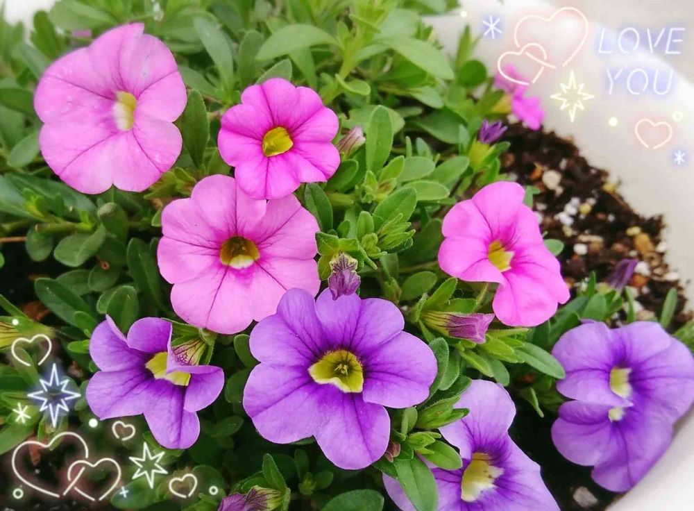 カリブラコアはハンギングバスケットにぴったりですね😆🎶