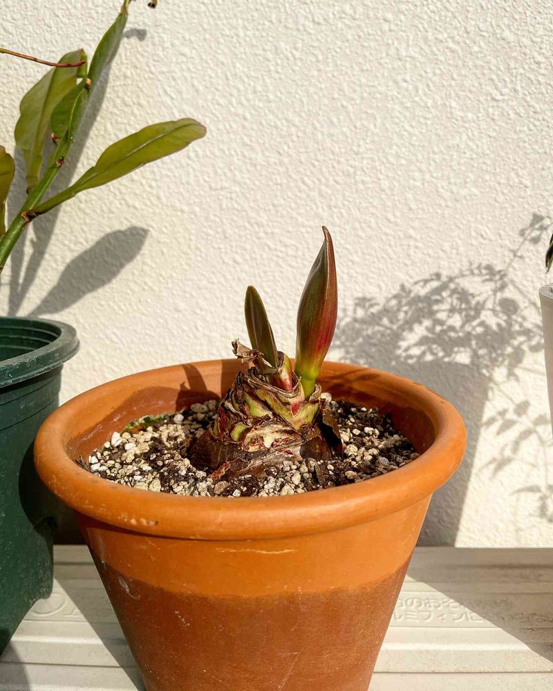 アマリリス、他にも色々欲しくなって、ポチッとしてました!芽が出た状態で届いたので、そこらへんにあった鉢に急ぎ植えてました‼️