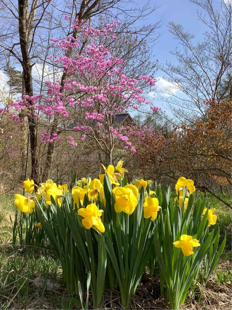 八ヶ岳の庭を水仙とミツバツツジが彩ってくれています😊