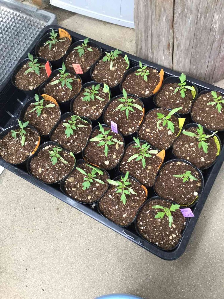 昨日植え替えたトマトの苗。