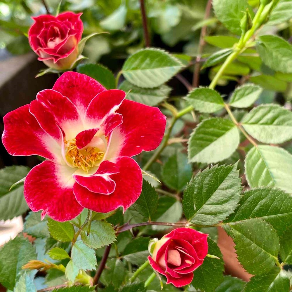 赤い花弁の中央で黄色いシベが輝いている咲いてすぐの美しさは貴重ですね🌹
