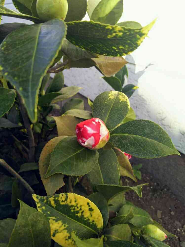 母方の祖父から受け継いだ斑入りの椿が咲きそうです😊