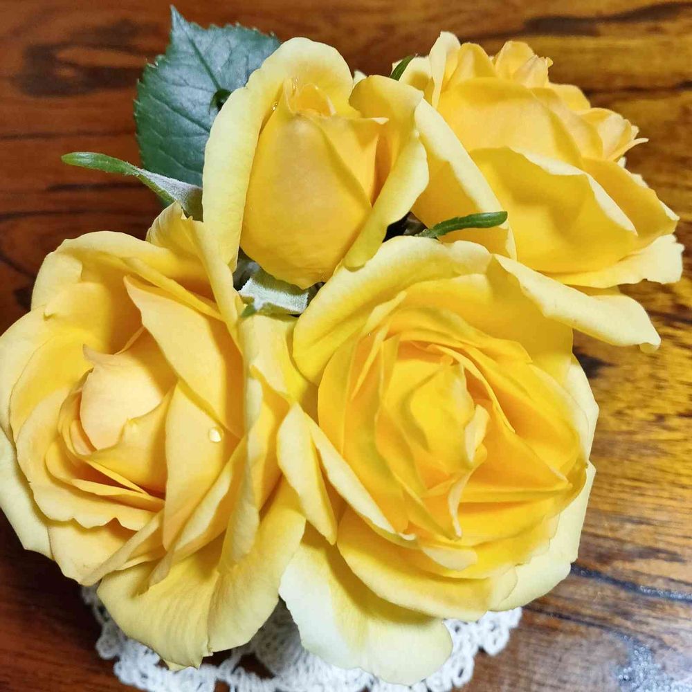 1本、枝がつぼみの重さに耐えきれなさそうになっていたので、風も強いし、まだ開いてないけどカットさせてもらってグラスに追加しました。周りの3本は先に切っていたものですが、全然しおれる様子もなく本当にお利口さんなバラです。