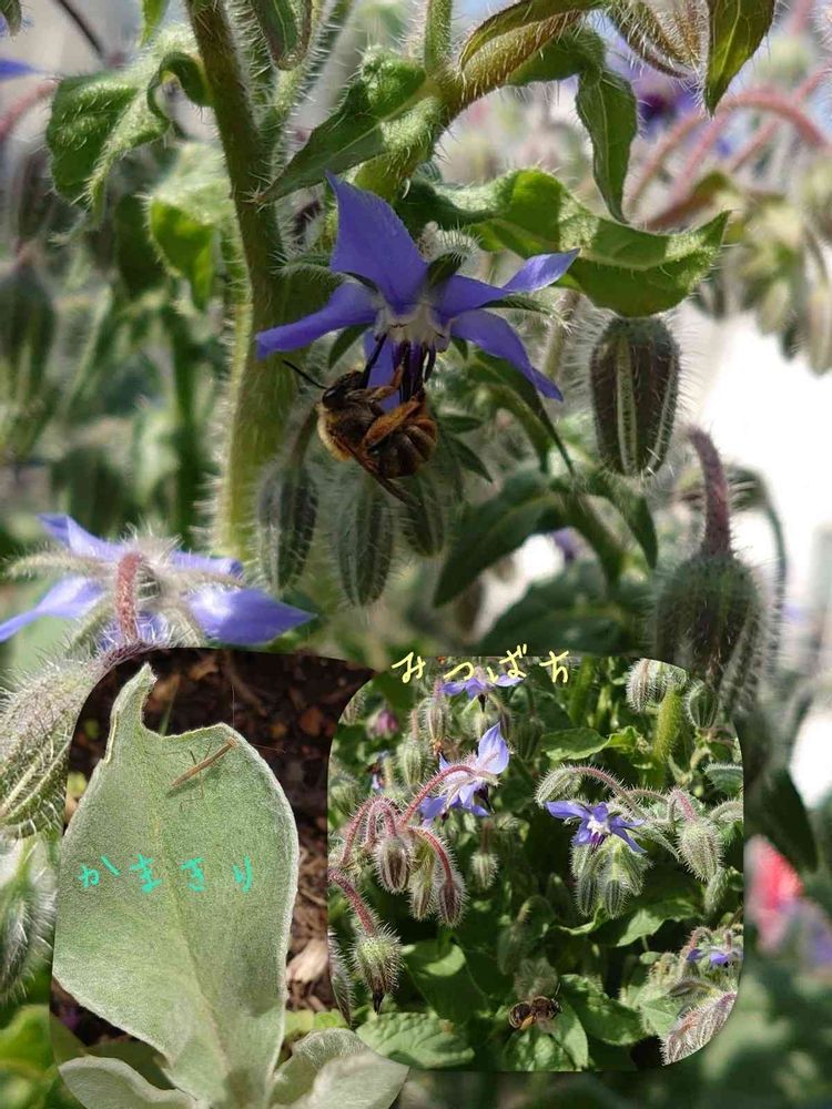 こんばんは。可愛いカマキリさんですね。ボリジも満開ですね。蜂さん🐝ブンブン大忙し‼️