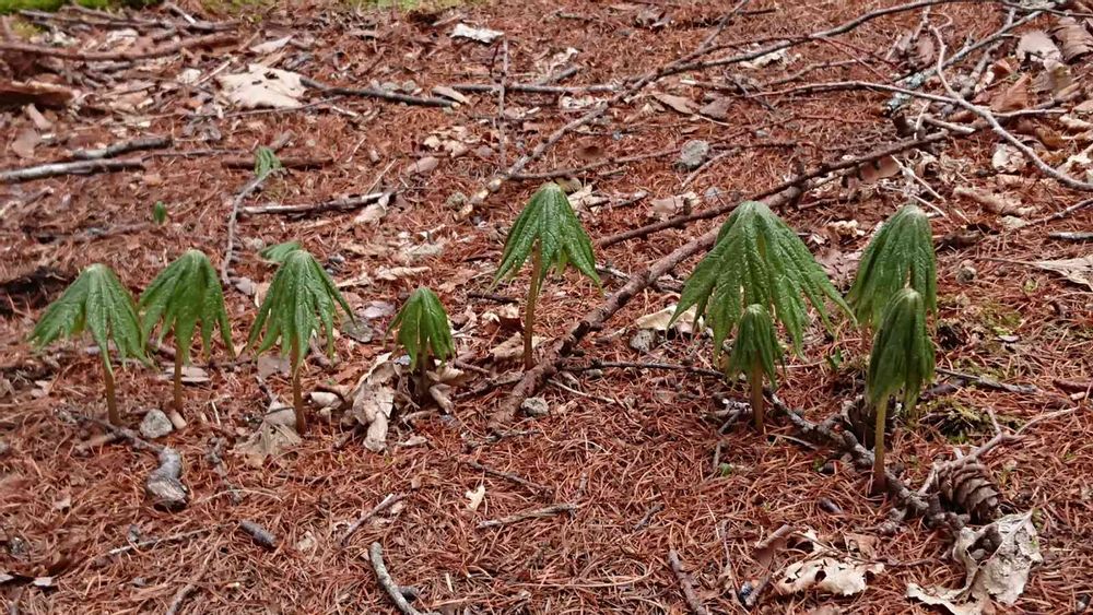 木の回りに可愛い、樹の苗のようなものがたくさん生えていました。