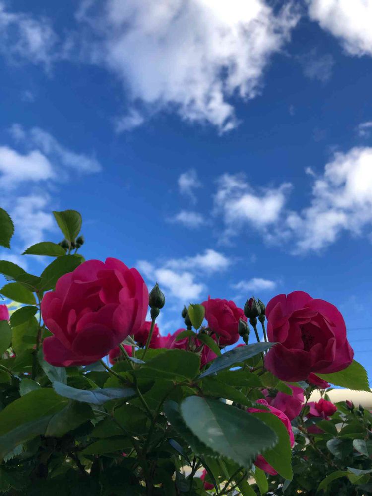 雨の後 スッキリ青空ですねー。バラも綺麗にたくさん咲いてますねー