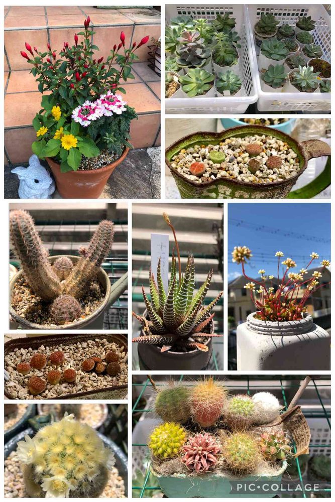 花の寄せ植えをしたり、多肉たちを整えて室内の子たちを外へ出したり、リトープスを新たにお迎えしたので鉢に植え、花を咲かせたサボテンに癒され、十二の巻から花芽がビョーンと伸びている事に気づき、ミニサボテンの寄せ植えが減ってしまったけど、可愛いかった😊💕
