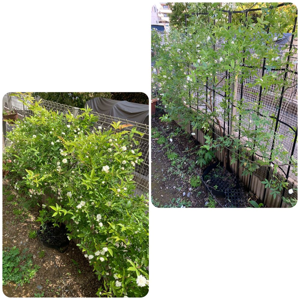 小さな庭,白八重モッコウバラ,フェンスのモッコウバラの投稿画像