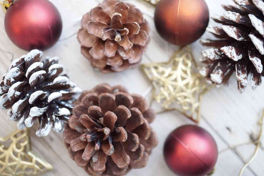 松ぼっくりを拾って、絵の具で染めてみました!絵の具は水で薄めすぎないようにすると、白が良い感じに塗れます!
