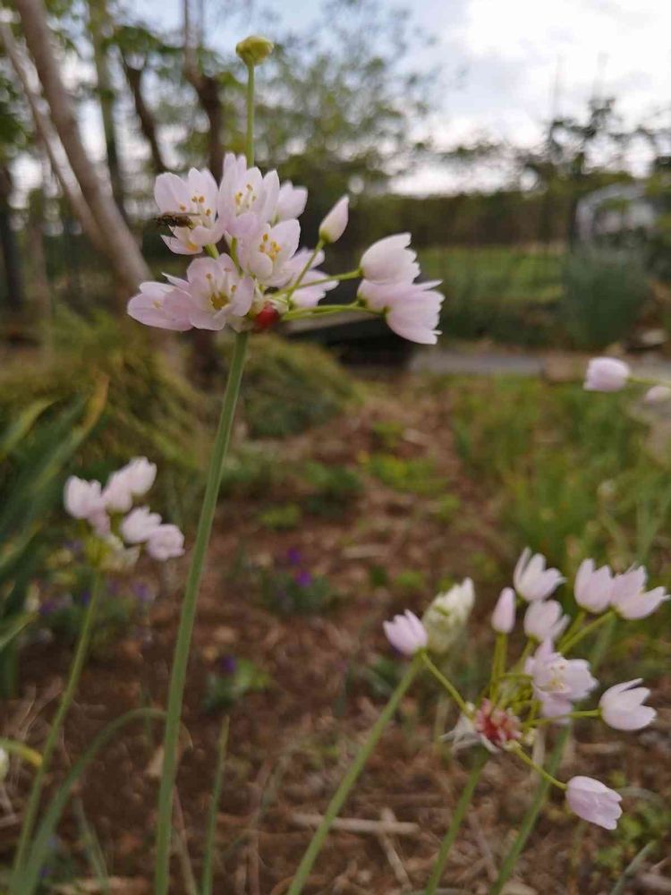 この花も20年位のお付き合い 薄いピンクで可愛いい💕 だけど 増える増える! ノビルと同じで種からも根の球根部分にも小さい球根がびっしり! 抜いても抜いても無くならない。初めは買って植えたもの 植物名はなんだろう? 植物名教えていただきました。調べのついでの情報ですが葉や球根は食べられるそうです。ノビルそのものでしたね