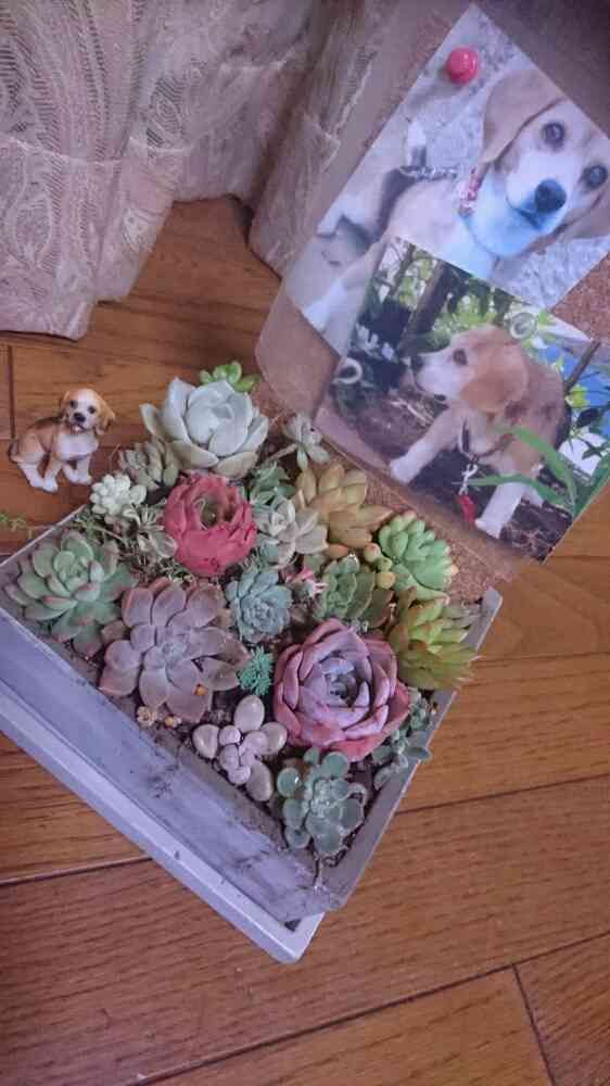 鉢はモルタルで、コルクボードを埋め込んで、写真たて風にした。