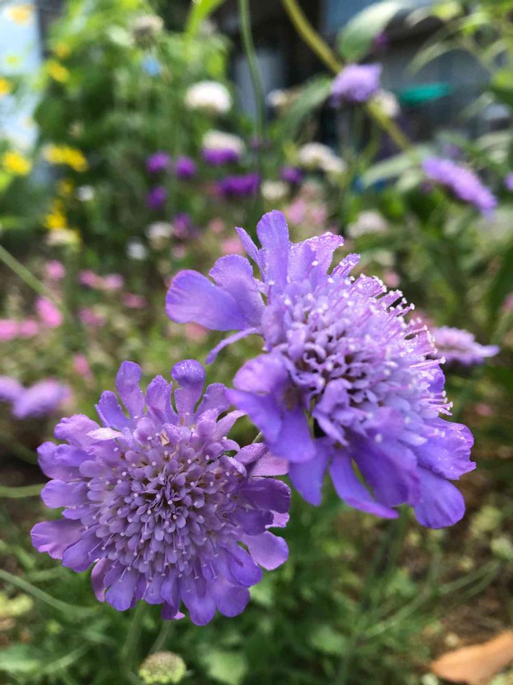 ピンクと紫のスカビオサお隣さんどうしなんですが・・