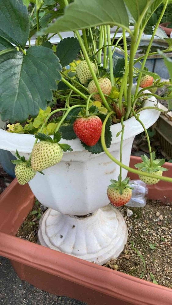 イチゴ色付いて来たので孫に届けました。🥰🥰🥰
