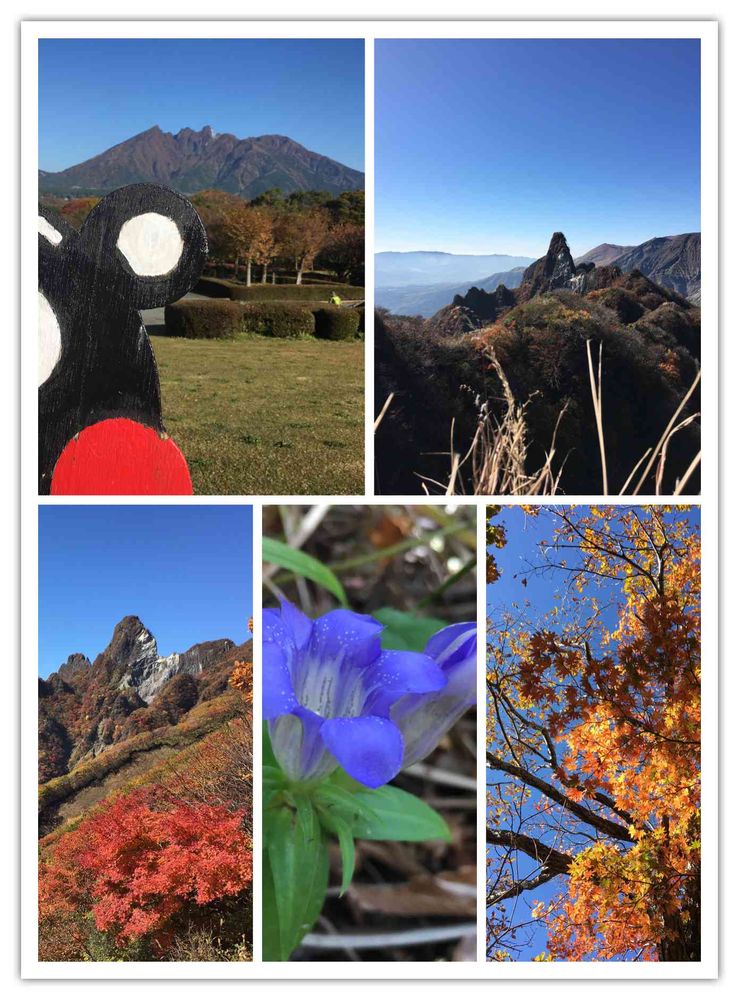 麓のくまモンの後方に見える山が阿蘇 根子岳です 1408m