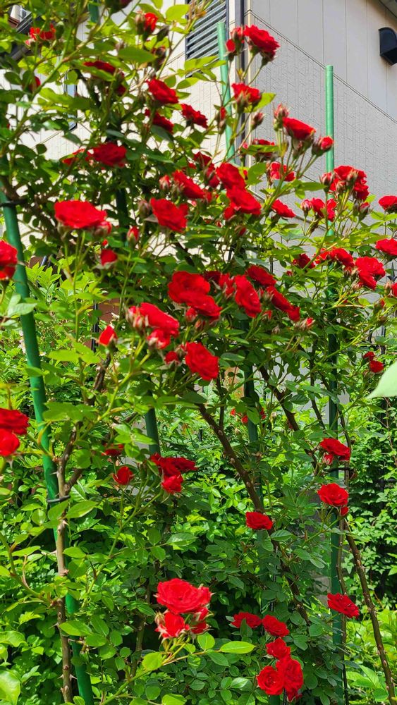 トレリスへの誘引が大変な品種ですが咲き揃いました。
