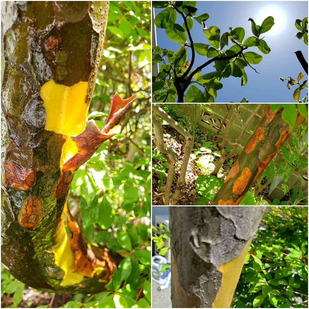 今お花に水をやっていたら花梨の木の表皮が円形に剥けている😨何々~?!と調べたら